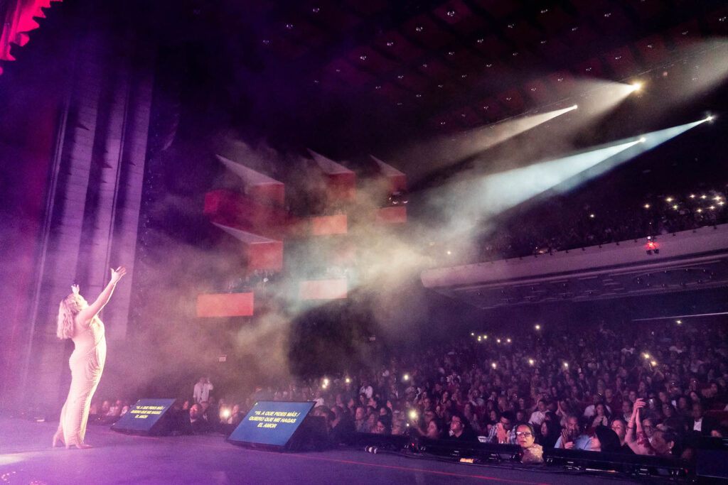 Uno de los momentos más vibrantes de la noche llegó con Lloviendo flores, acompañado de una coreografía vistosa protagonizada por dos bailarines y sostenida por coristas que aportaron elegancia y fuerza vocal, todo enmarcado en una producción moderna dirigida por Skypro. Tras una ovación prolongada, Ednita complació a los asistentes con Aprenderé y Voy, extendiendo un concierto que superó las dos horas de duración.