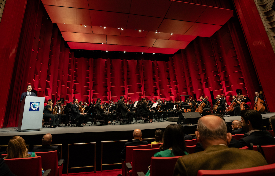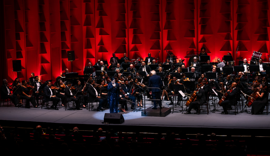 En vísperas del Día Nacional del Merengue, la ocasión no podía ser mejor para cerrar con lo que hoy es primero. Llegó el momento de Maridalia Hernández, quien transmitió con naturalidad y entusiasmo la alegría de interpretar las canciones de su abuelo, Julio Alberto Hernández, en un popurrí de temas arreglados por Bienvenido Bustamante. Con la Orquesta Sinfónica desplegando todo su poderío y los solistas invitados sumándose al cierre, resonaron las notas del vibrante merengue Papá Bocó, de Manuel Sánchez Acosta y, para culminar la noche, Caña brava, de Toño Abreu, en el que el maestro fusiona el lenguaje de la Big Band con los matices de la sinfónica, enriquecido con los colores del merengue tradicional.