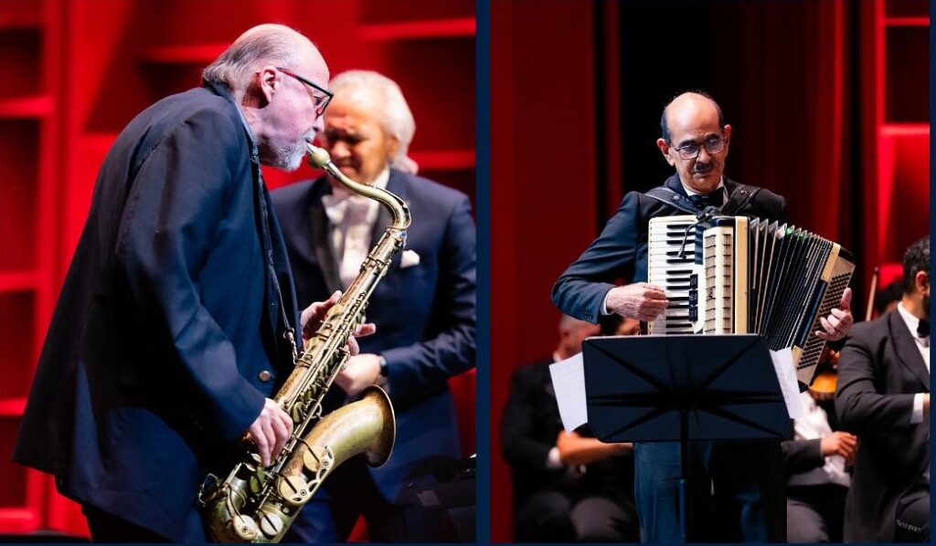 Así comenzó a fluir la generosa hora y cuarto reservada para un viaje musical que abrazó grandes clásicos del merengue y, muy especialmente, del bolero y la canción romántica. Tras la obertura, llegaron Amorosa, de Salvador Sturla; Ella, de Luis Rivera; y Abril 21, una emotiva composición del propio director de la orquesta, que abrió el escenario al primer solista de la noche: el saxofonista dominicano Sandy Gabriel, uno de los amigos convocados para este encuentro musical.