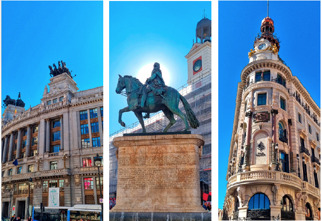 Madrid, Espña.– La Puerta del Sol es el corazón palpitante de Madrid y en esta ocasión sus palpitaciones se sincronizaba con las mías. Javier como buen guía de turistas, me grita: «¡Hombre ya!», y me frena de golpe, contengo la euforia aún con la canción sonando en mi cabeza, le pongo control a mis emociones y me sumo nuevamente al grupo de turistas que se arremolinaba frente al reloj de la Real Casa de Correos, como si esperaran el conteo de fin de año, pero lo único que se avecinaba eran los diferentes grupos del free tour y más personas haciendo la fila para la foto en el «Km. 0».