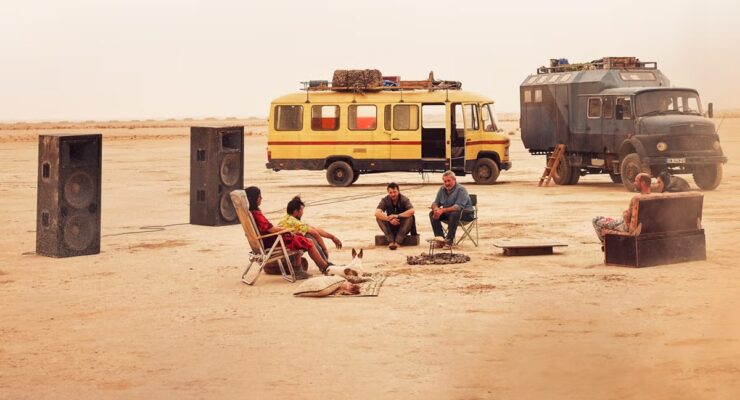 En el contraste de desierto, horas de bailes, cigarros, bebidas, pastillas y la causa que han llevado a Luis y a Esteban a estar allí, se establece la solidaridad que más adelante enfrentará la tragedia en varios bandos.