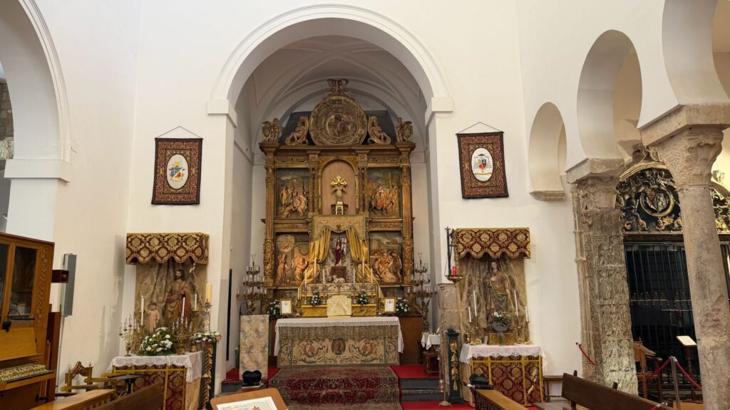 Uno de los primeros encuentros fue la Iglesia de El Salvador. No es un lugar que destaque a simple vista, pero al entrar se entiende mejor lo que representa Toledo. El edificio se levanta sobre restos visigodos y también sobre una antigua mezquita, lo que lo convierte en un ejemplo claro de cómo distintas culturas han ido dejando su huella en la ciudad. Aquí no hay una sola historia, hay varias conviviendo en el mismo espacio, una mezcla se repite constantemente.