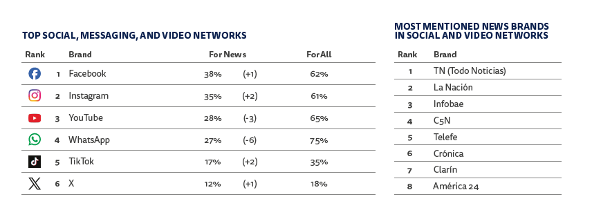 En este ecosistema, Instagram se ha consolidado como el canal más influyente para contenidos políticos, mientras que Facebook sigue siendo la red más utilizada para noticias. Sin embargo, el desequilibrio de género sigue siendo notable: 14 de las 15 figuras más mencionadas son hombres, siendo Yanina Latorre la única mujer destacada, enfocada en el entretenimiento más que en la política.