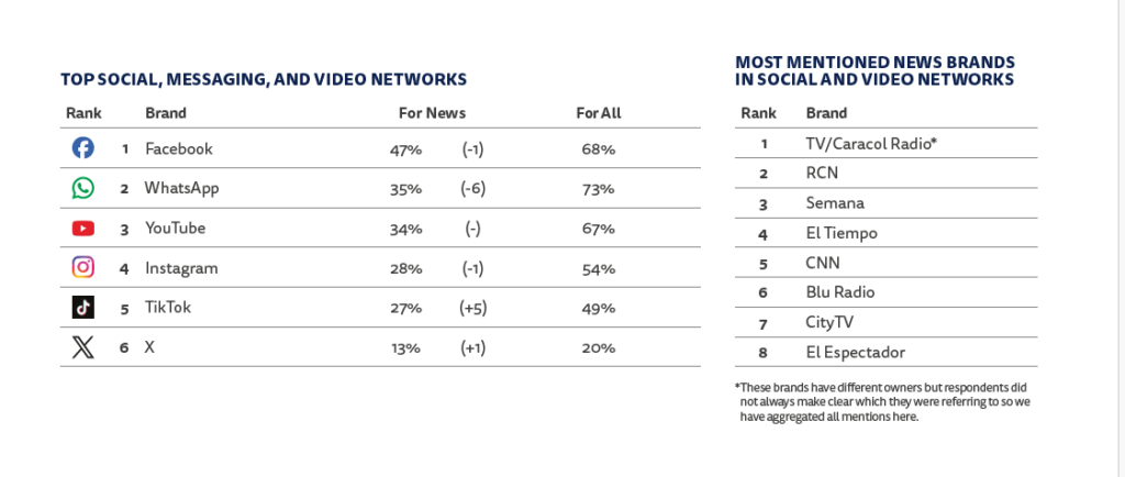 Entre los periodistas tradicionales, Daniel Coronell y Daniel Samper Ospina siguen destacando, adaptando sus voces a plataformas como YouTube y X. Otros nombres, como Luis Carlos Vélez, Juan Diego Alvira o María Jimena Duzán, reflejan cómo las figuras de los medios tradicionales mantienen presencia en redes mientras el consumo informativo migra hacia lo digital.